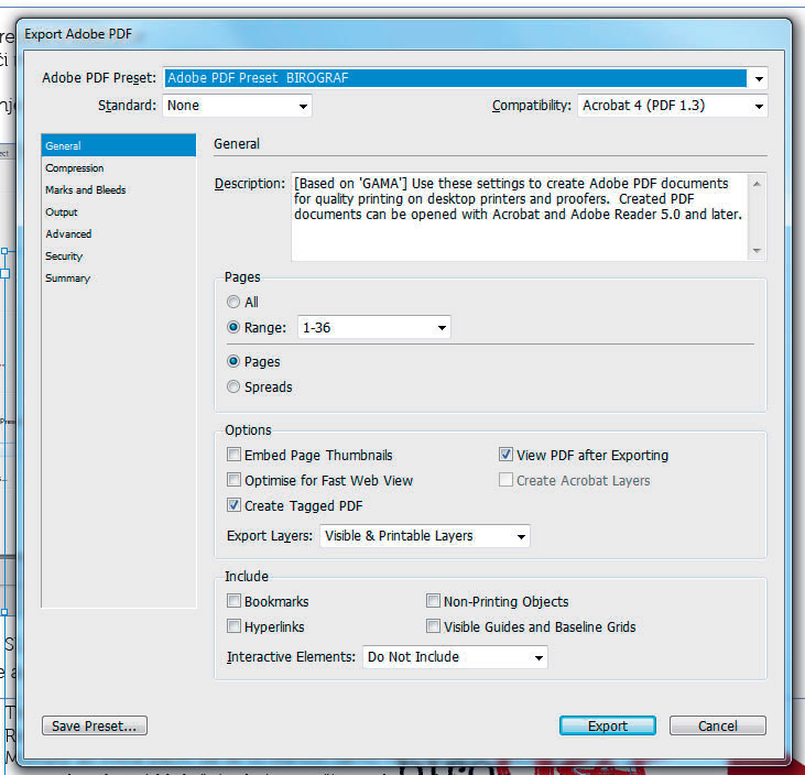 From InDesign we go to Export/