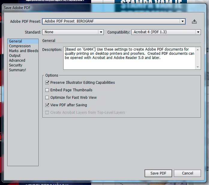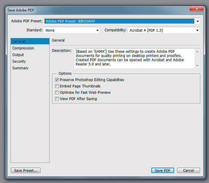 In the Format field, select Photoshop PDF